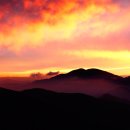 지리산의 붉은 노을이었다. 시계를 보지 않으면 일출인지 일몰인지 헷갈린다 꼭 불그스름한 콩알 같이 생겼다. 천왕봉 같은 정상이나, 봉우리, 전망대가 아닌 대피소 바로 옆에서 이런 광경을 볼 수 있다는 게...